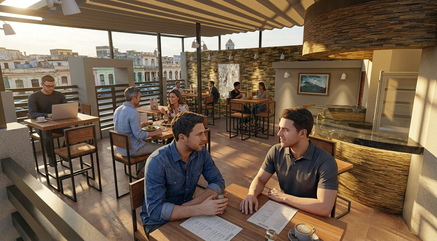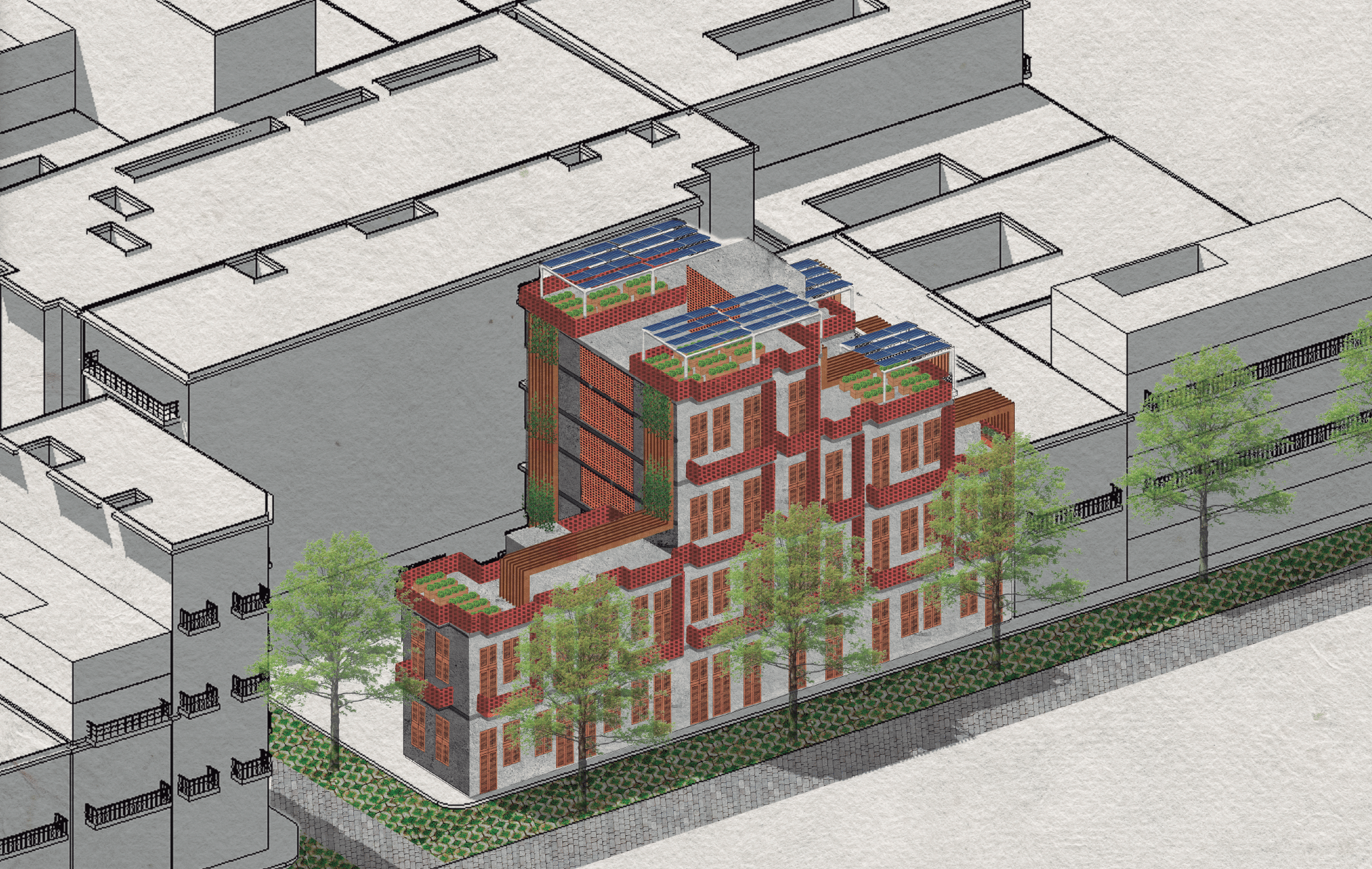 Final thesis project exploring strategies to improve energy and food self-sufficiency in a historic urban context in Centro Habana. The proposal operates at both urban and architectural scales. The project integrates passive design strategies, solar protection, and rooftop systems for energy generation, urban agriculture, and social use.