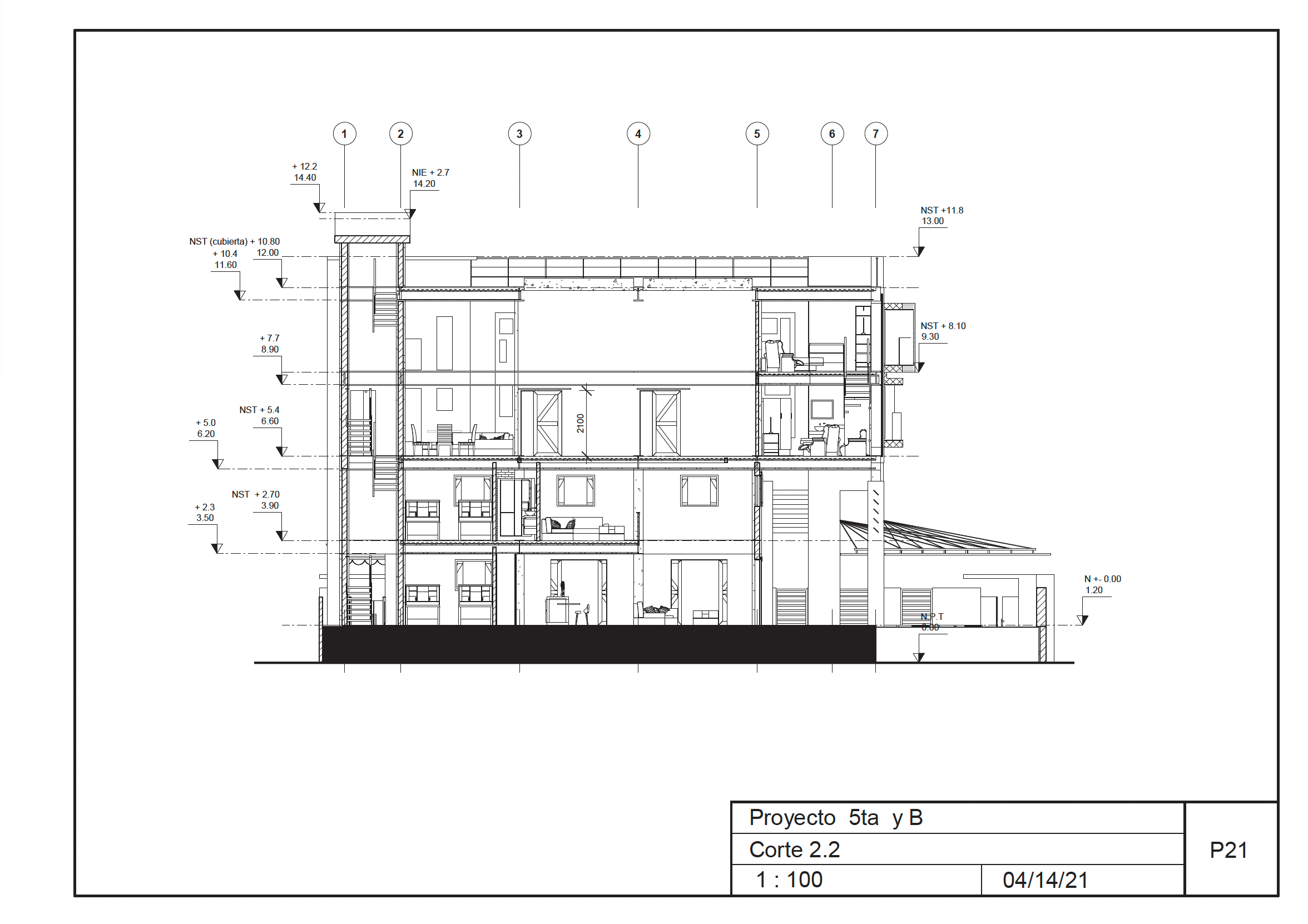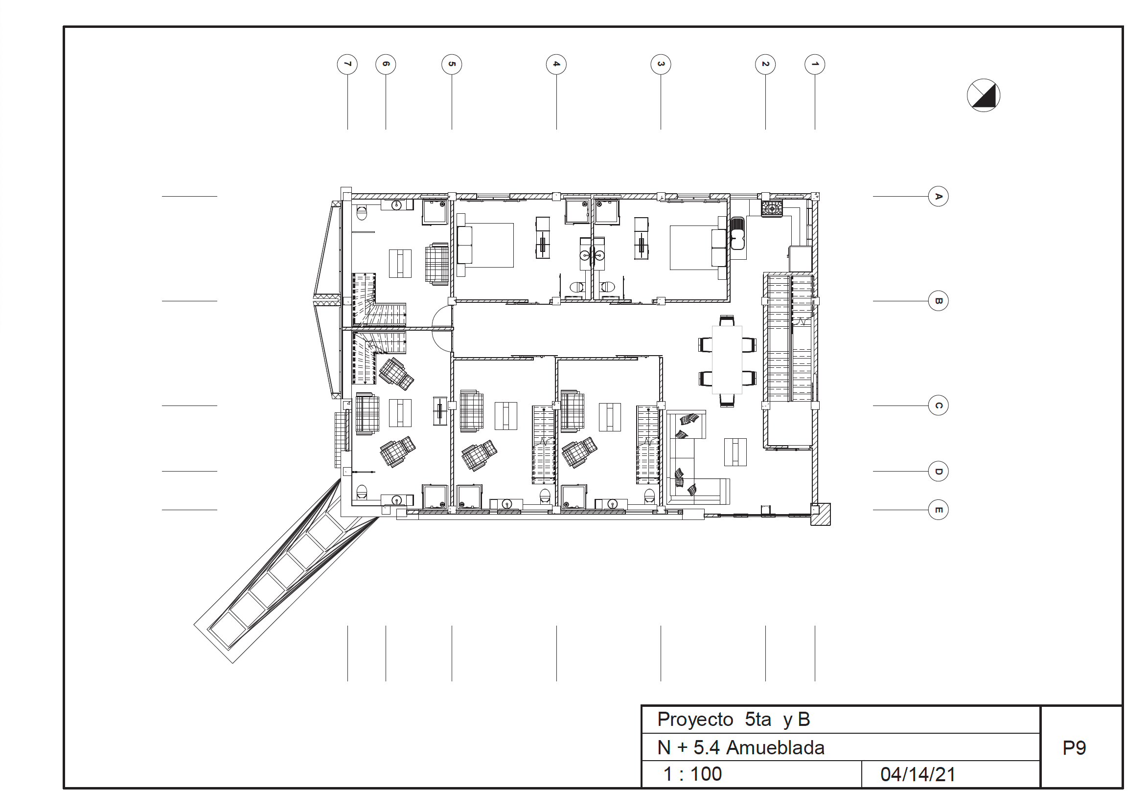 Schematic design proposal for a two-story residential building located on a corner lot in Vedado, Havana. The project was conceived as a future hostel, focusing on optimizing interior space distribution while maintaining spatial quality and responding to the surrounding architectural context.
