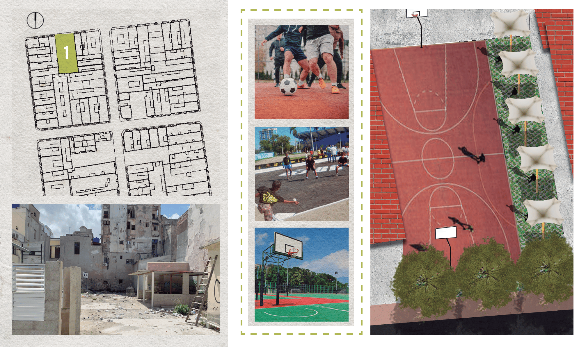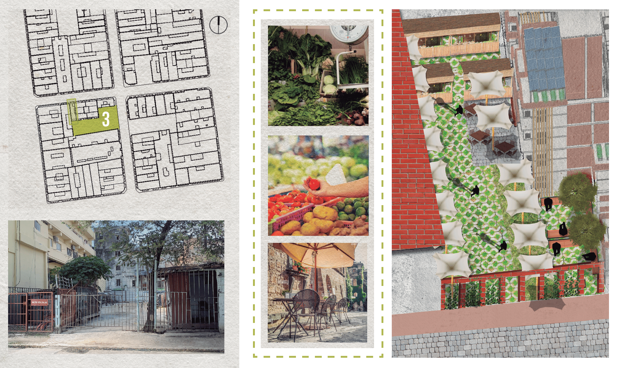 Final thesis project exploring strategies to improve energy and food self-sufficiency in a historic urban context in Centro Habana. The proposal operates at both urban and architectural scales, including the redesign of a four-block area and the development of a new residential building on a deteriorated site. The project integrates environmental strategies, spatial reorganization, and rooftop systems to support sustainable urban living.