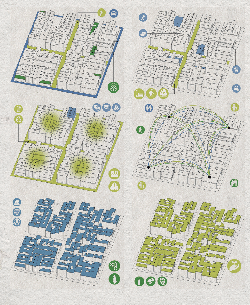 The project addresses the challenges of historic, high-density urban areas, focusing on improving living conditions through strategies that enhance local self-sufficiency in energy and food production.